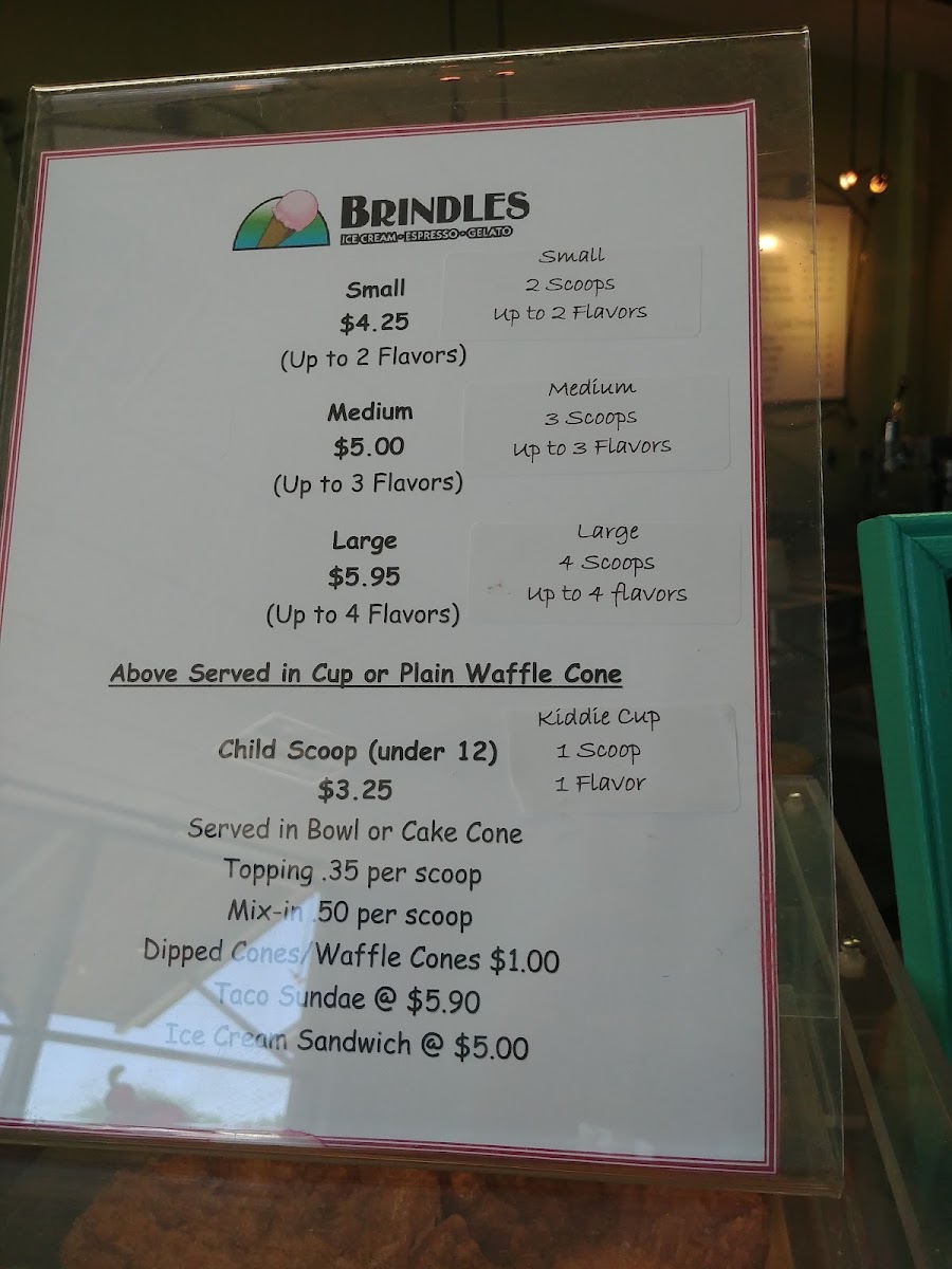 Brindles Ice Creams Menu