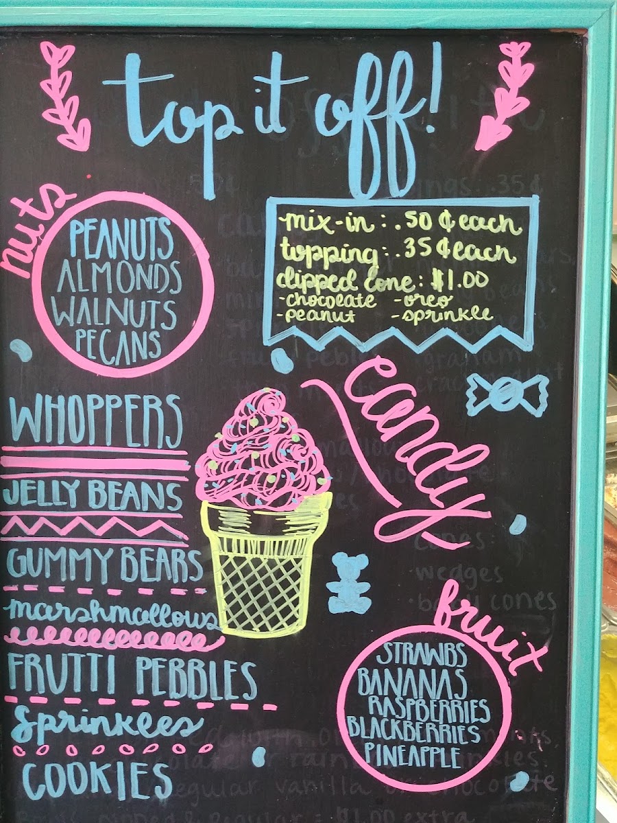 This menu is suitable for casual visits focused on dessert and refreshment. It caters to quick service orders with options to sample various flavors before choosing. The variety of frozen treats makes it ideal for dessert breaks any time of the day.